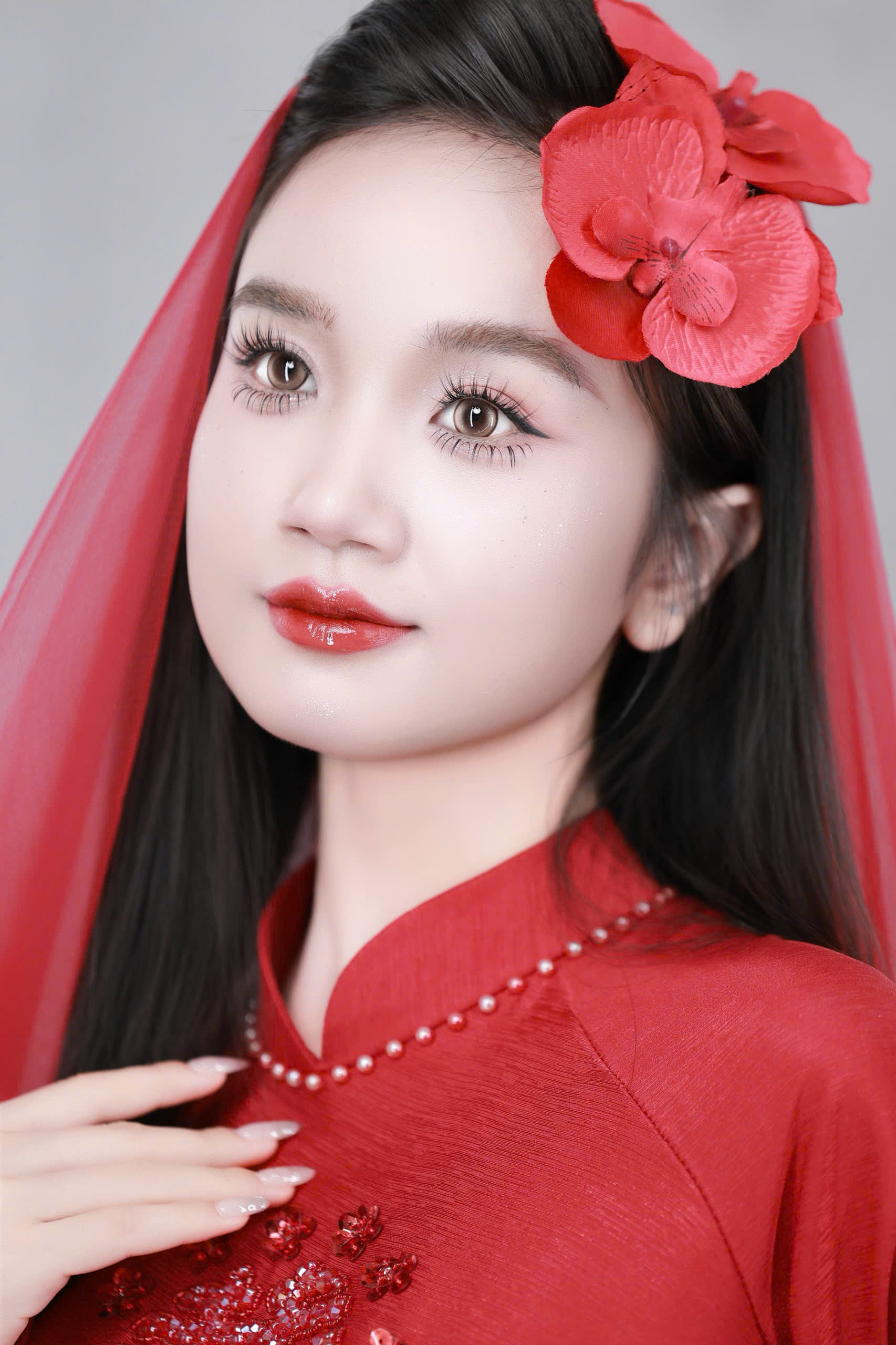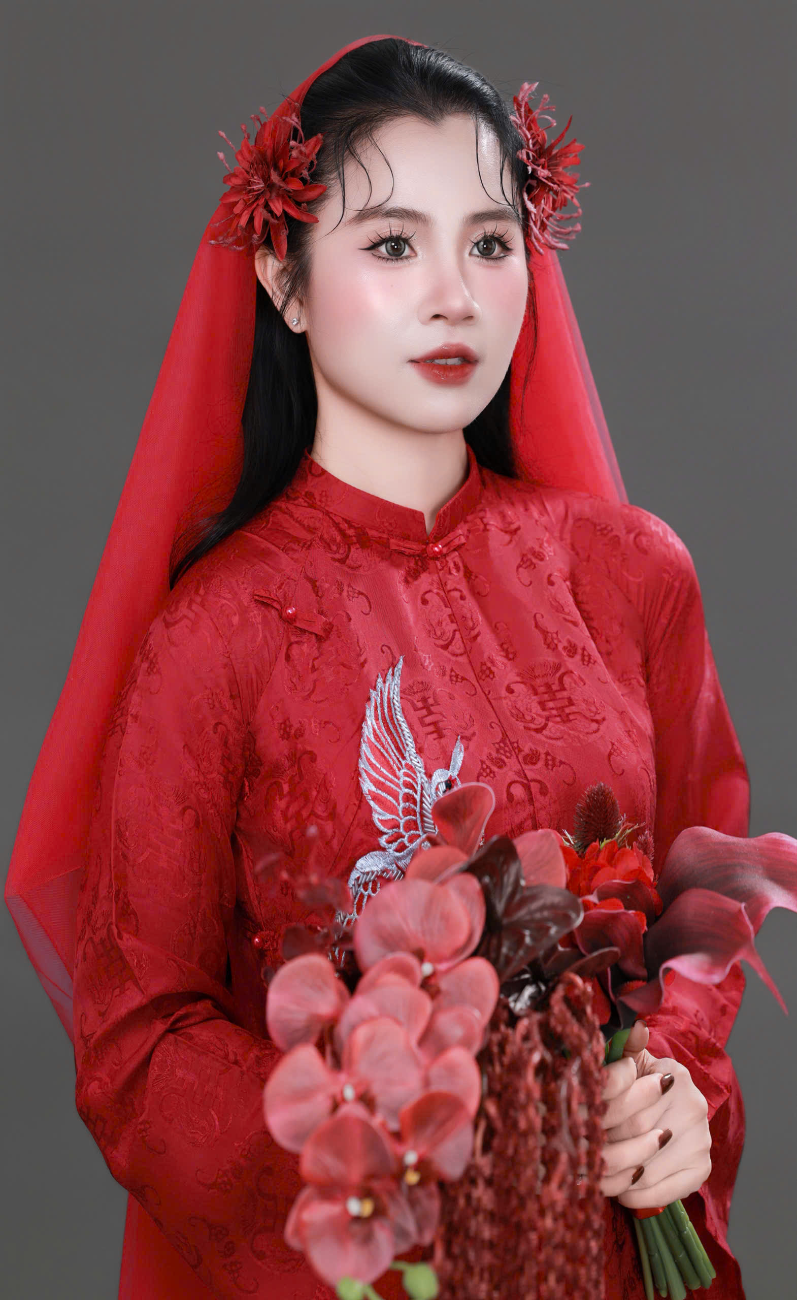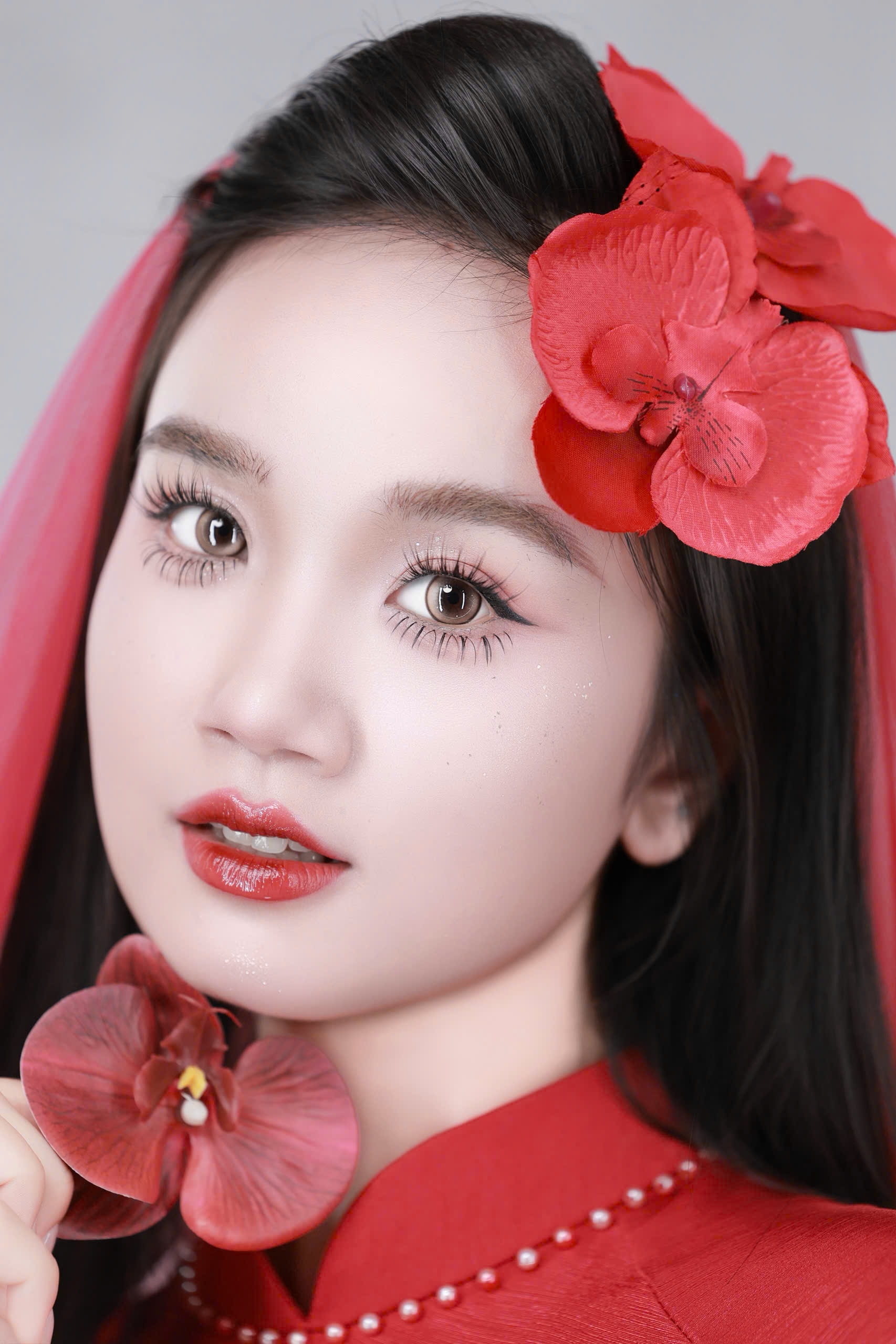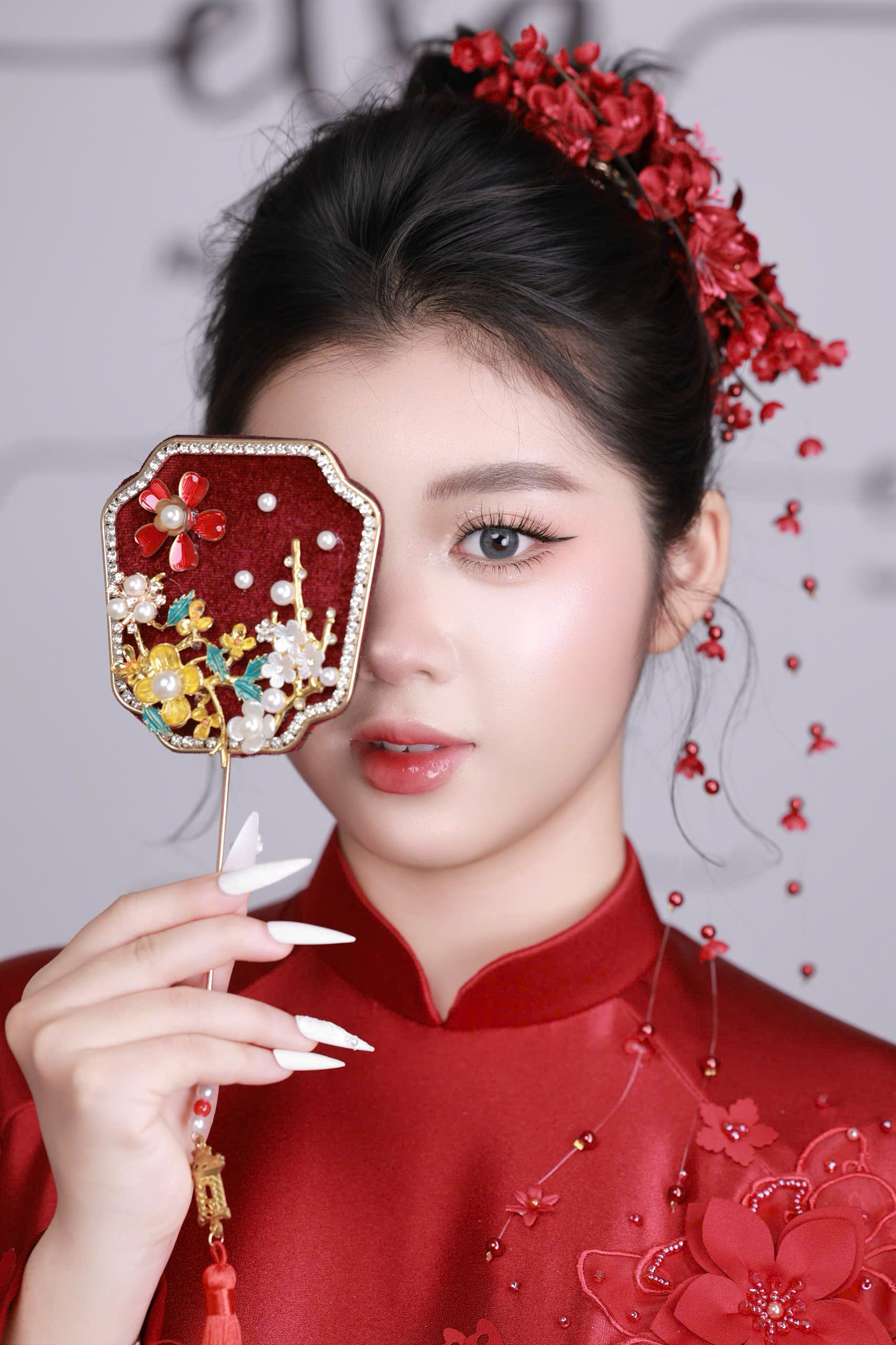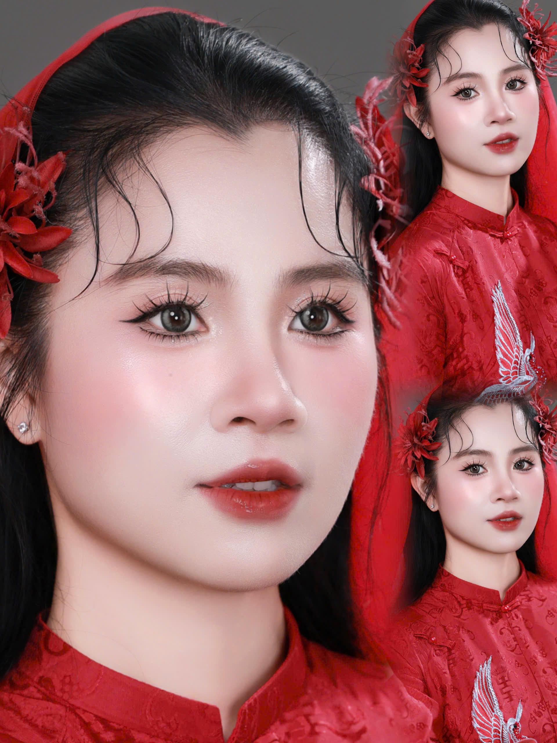 Layout makeup cô dâu áo dài đỏ