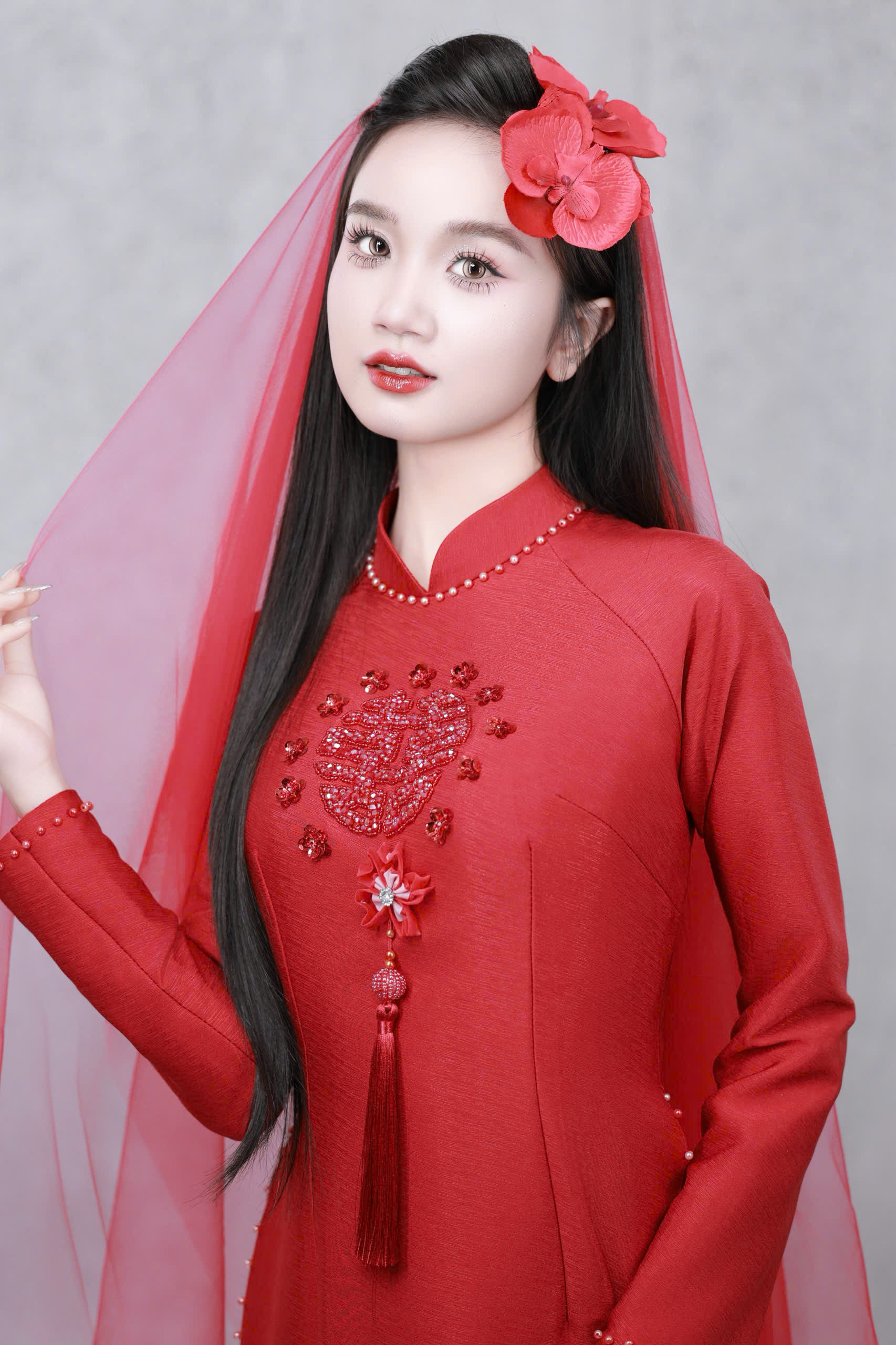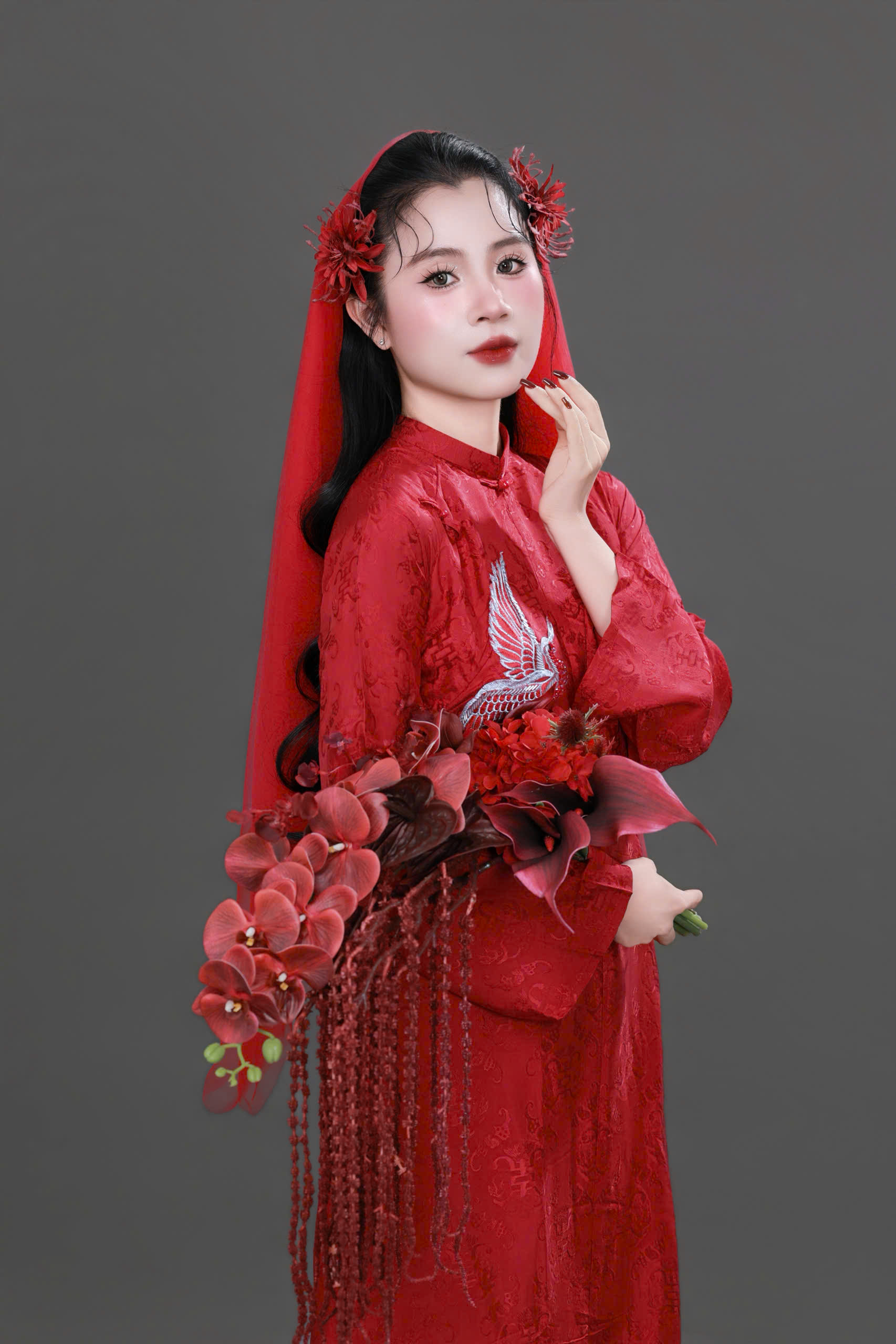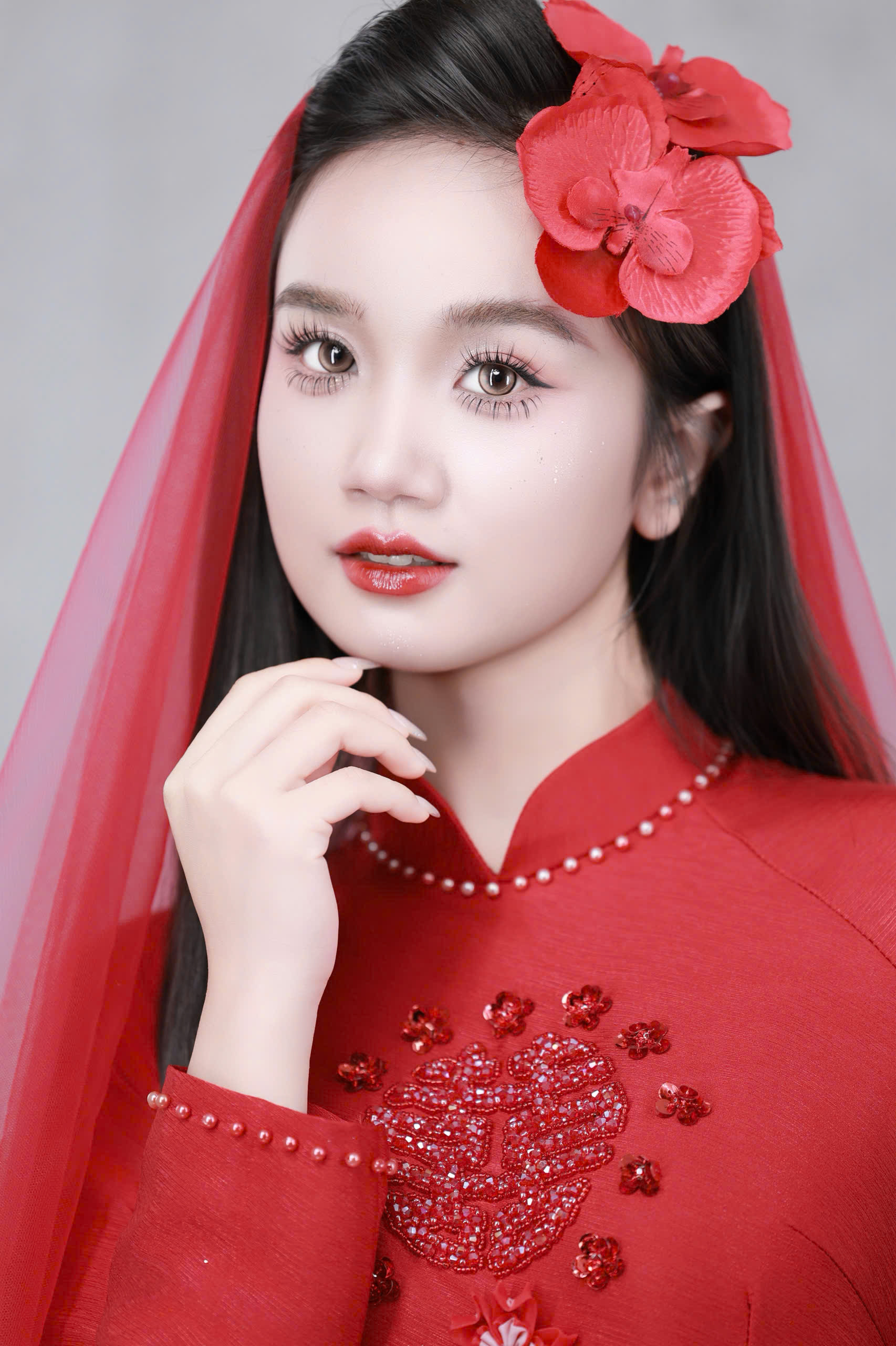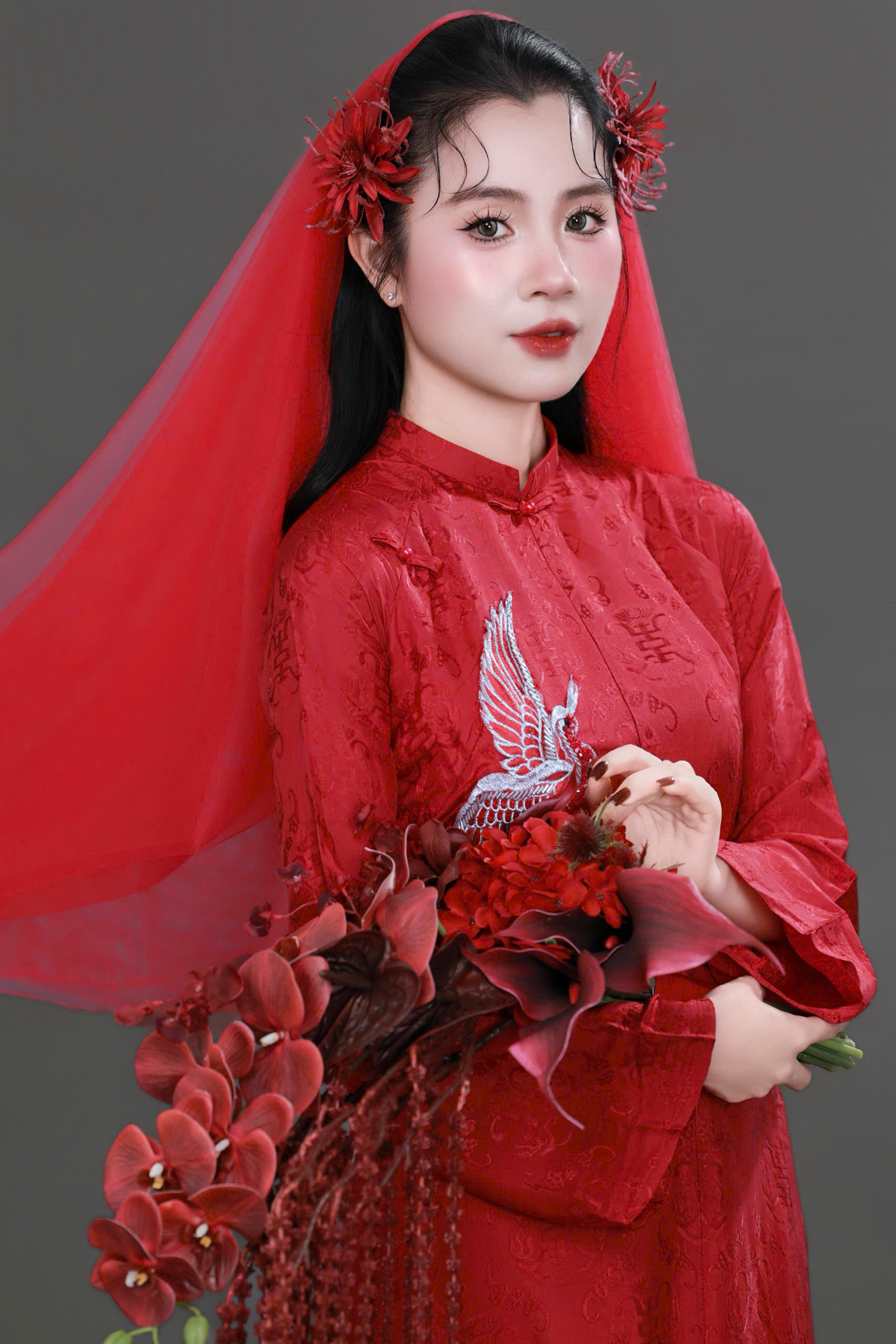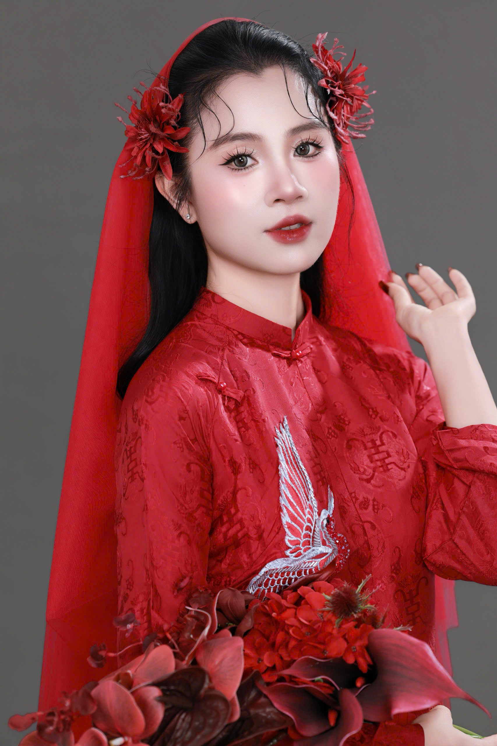 Layout makeup cô dâu áo dài đỏ